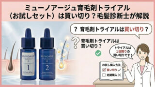 ミューノアージュ ミューノアージュお試しセットは2種類!育毛剤トライアルは買い切り?毛髪診断士が解説