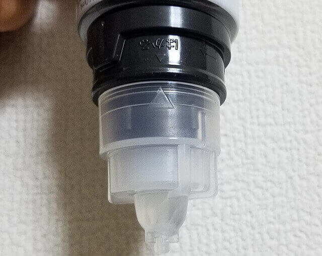 付け方は簡単で、キャップを外してボトルを逆さまにし、矢印を「はかる」に合わせて2~3秒待ちます。
