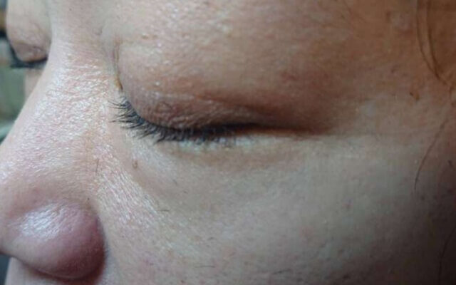 狙った生え際ギリギリにピンポイントで塗ろうとすると、チップがまぶたの方まで大きくはみ出してしまいます。